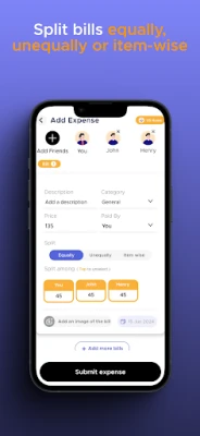 > Flexible Splitting Options: Equal, unequal, or item-wise splitting.