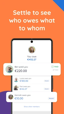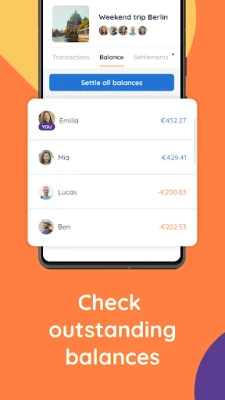 • Settle the list and see immediately who gets money back and who still needs to pay