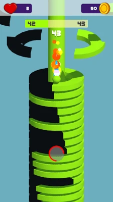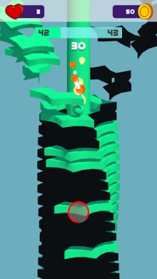 How to Play: - Press and hold to speed up the ball’s descent. - Avoid black platforms—they'll stop your progress! - Continuous tapping turns your ball into a powerful fireball. - Reach the base of the tower to win.