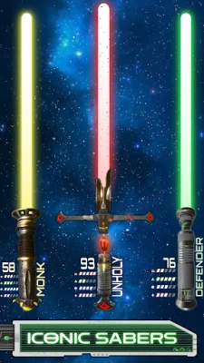 Become a star saber maker ! Construct the best laser blade ever ! Collect rare weapon parts to merge them together in one custom star saber. You are able to fully customize all main pieces. Change pommel, handle, emitter and guard to construct a perfectly balanced star saber. If the stats of your space sword will be too low, or unbalanced you will face the consequences on the battlefront. Improve your sword maker skills to create iconic blades such as “Claymore of the light”, “The Chosen one”, “Star gazer”. Use them in battle to finish the wars across space in this epic sword fighting games.