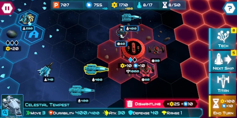- Place your allied fleet on an enemy/neutral planet tile to start the conquest