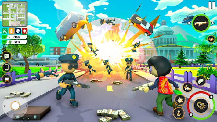 In an open-world action RPG game, be a mafia action hero adventure lead! With stickman shooting games, this funny action game has major objectives to start on. Like bank robbery, chasing sports cars, stickman auto theft with grand action objectives. With that police cars chasing our mate in stickman theft wars, so catch up with other dudes to save your life in our first story mode.