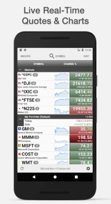 ✔ Sortable symbol lists: Sort by ticker symbol or stock price percentage change.