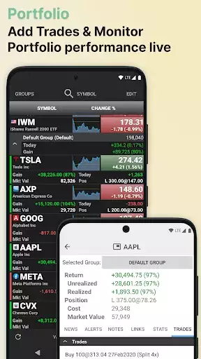 ✔ Full Screen Charts and Browser: Instantly toggle to full screen for charting or reading news articles about your stocks.