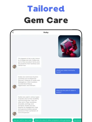 * AI Chat Assistance: Engage with our AI assistant to dive deeper into details. Ask questions about gemstones properties, origin, uses, and care.