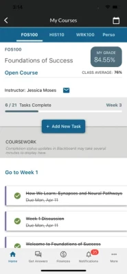 - Push notifications from your courses when your grades have been updated and when announcements are sent out.