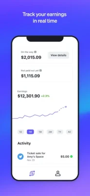 Get notified about incoming payments, check your available balance in real time, and see your earnings at a glance.