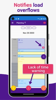 Analysis of lack of time: It alerts you when the time you have set to study is not enough to finish your tasks. So you can decide ahead of time how to solve this issue when you are completely overwhelmed by assignments.