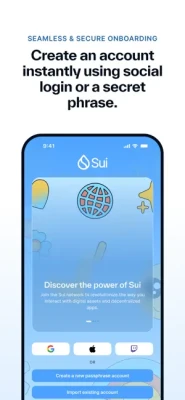 Onboarding made simple - Social account sign-in - Mnemonic and Key management - Access SUI in-wallet