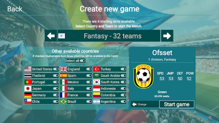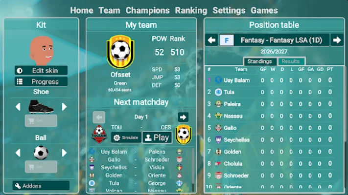 A 2D endless soccer tournament simulation game. You can select a team, customize your player, play matches, and compete to win championships.
