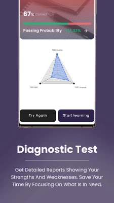 π Performance Analytics, & Passing Possibility: Analyze performance over time, monitor your strengths and weaknesses. Additionally, estimate the likelihood of passing the test based on your performance in TABE practice tests.