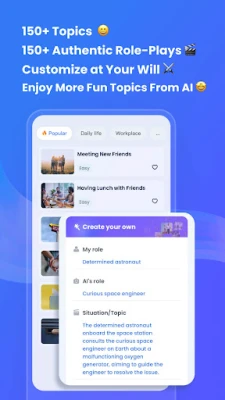 Choose from over 150 topics and 150 real-life scenarios, ranging from business and professional interactions to everyday conversations and personal experiences!