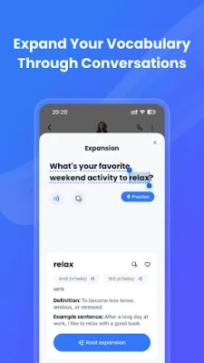 Through conversations, you can use our AI learning feature to translate, explain, and save any words, phrases, or sentences you don't understand. With unique root expansion and advanced sentence pattern analysis capabilities, you can learn more expressions and practice them by sending voice messages.