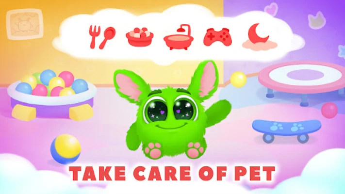 In this pets-tamagotchi game, you'll experience endless simulation adventures with your virtual pets for kids in the enchanting Fluffyville. Play with pets in kids games, and enjoy countless heartwarming moments together with kids and pet-friends. As pets grow, new activities, toys, and surprises will keep kids bond with them stronger than ever!