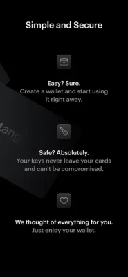 Tangem Wallet is a cryptocurrency wallet for sending and receiving Bitcoin and cryptocurrencies safely and securely.No wires, batteries or chargers anymore, all you need to manage cryptocurrency is a Tangem card and a phone.Keys are generated and stored confidentially, no one has access to them, no security risks.