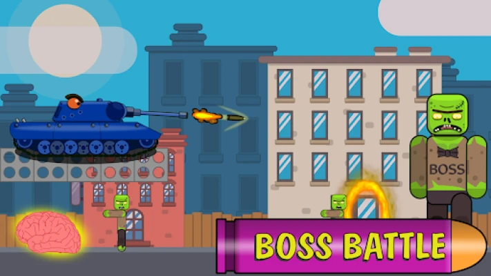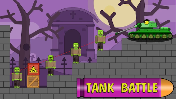 TANK BATTLE Use the full potential of your brain and the bullet echo to protect the whole world from the invasion of zombies. This is a real war against bosses and their minions using cannons and well-aimed shots. The battle takes place in different locations, you have to clear the cemetery, the black forest and the city!