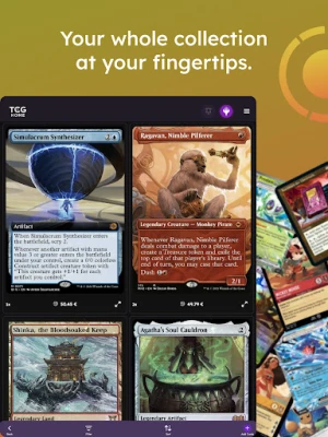 The TCG Home collection manager streamlines the trading process by seamlessly connecting you with your favorite TCG marketplaces. This direct integration eliminates the hassle of jumping through hoops and lets you focus on what truly matters - building your dream collection. Effortlessly buy and sell cards with complete information at your fingertips. Whether you're meticulously crafting your next competitive deck or looking to offload some duplicates, TCG Home empowers you with real-time data. Just a few clicks reveal current offers and historical sales trends for every card, allowing you to make informed decisions with confidence.