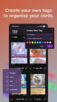 Create wish lists, trading lists and custom tags to organise your cards up to your preferences. Smart filters for sets, languages, tags, types and many more make TCG Home the single best collection manager.