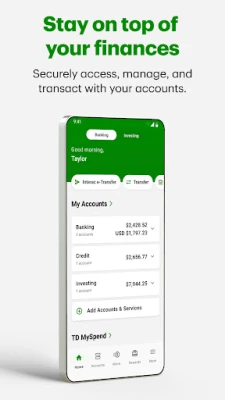 • Manage your portfolio of diverse TD accounts, and control access to your debit and Credit Cards.