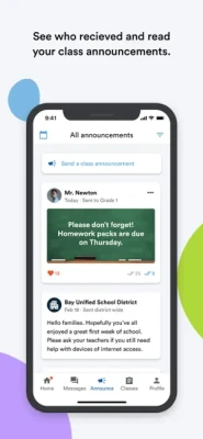 • Attach pictures, videos, polls, and files to text messages to share what students are learning in school