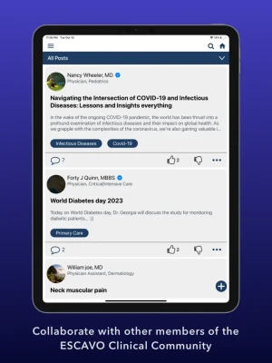 The Chief Complaint app now includes access the new ESCAVO Clinical Community, a forum where clinicians can exchange ideas, ask questions and collaborate on sepsis and other clinical topics.