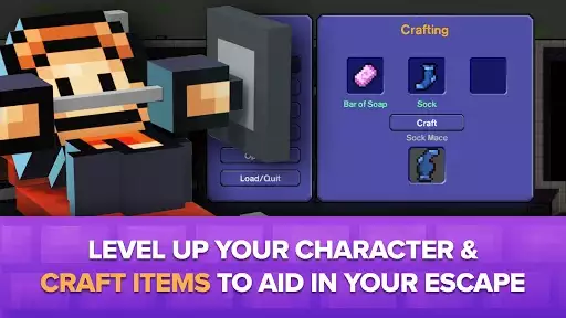 Materials purchased or "borrowed" from your fellow inmates are used to craft tools and other items like wires, a bottle of bleach, a piece of timber, a bar of chocolate, a plastic comb, and much more. If you’re smart enough, you’ll figure out ways to make your escape. There are dozens of items to find and use to get out of your cell, including a pickaxe, wire cutters, zip lines and more.
