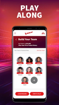 Watch the competition and build your fantasy team of artists. Compete against fellow fans by answering The Voice trivia questions and by participating in polls to earn points. See where your points stack on the Leaderboard and check your team's progress over the season!