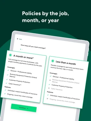 Thimble offers coverage by the job, month, or year so you can choose the duration that works for you, then upgrade when business really takes off*.