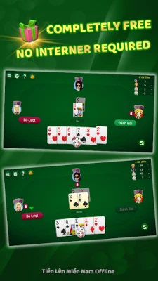 Enjoy Tiến Lên Miền Nam Offline anytime, anywhere without needing an internet connection. Moreover, the game is completely free; just download it to your device and start playing immediately.
