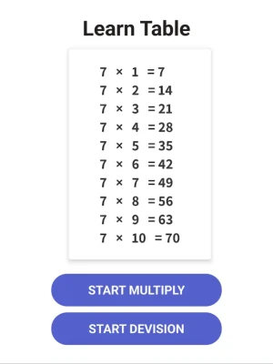 The "Multiplication Table" app has been developed based on learning algorithms that select questions based on your skills.