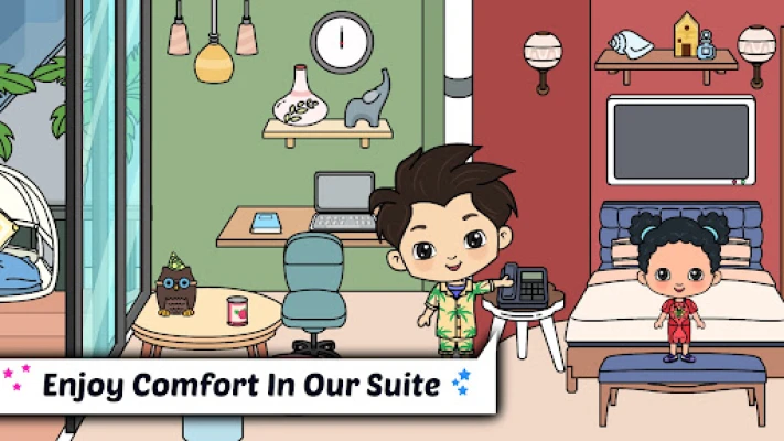 From travels around the world to enjoying the relaxing atmosphere of a resort pool, there’s always something exciting to do in Tizi Town. Whether you’re staying in a luxurious dream hotel or playing fun activities at a family resort, your experience in Tizi hotel is filled with wonder. Enjoy interactive games that make you feel like you’re on a real-life family vacation, complete with relaxing in the hotel with pool or receiving first-class hotel room service. If you love Toca Boca and My Town, you'll feel right at home in the exciting and immersive Tizi Hotel!