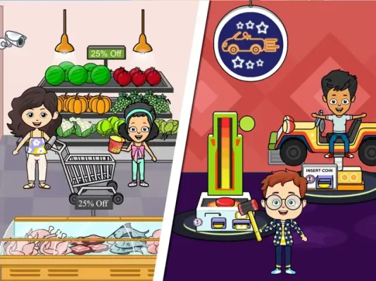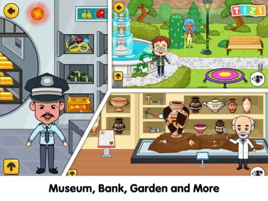 Check out the Tizi Bank and experience real-life bank activities. Store your precious jewels and valuables safely in the vault. There's also a secret in the Bank for you!