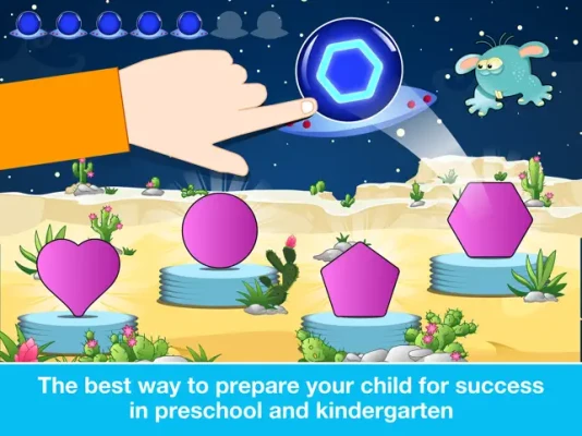 Preschool curriculum in one endearing alien-themed app. Land UFOs, explore extraterrestrial lands, vacuum the space, save the aliens, and much more. This fun-packed preschool educational adventure takes you out of this world to start a journey of learning. Have fun tracing letters, shapes, and numbers with aliens; or play 6 engaging educational mini-games to learn names of shapes, letters, numbers, and colors.