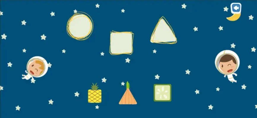 Shapes games for kids: game to learn shapes like circle, square and triangle. Children must identify the shape of the fruit and drag it to the corresponding shape.