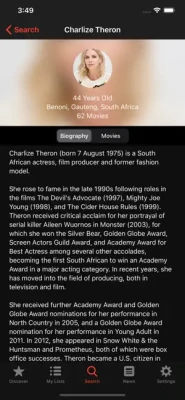 - Cast profiles. Learn more about your favorite actors/directors and browse their movies.