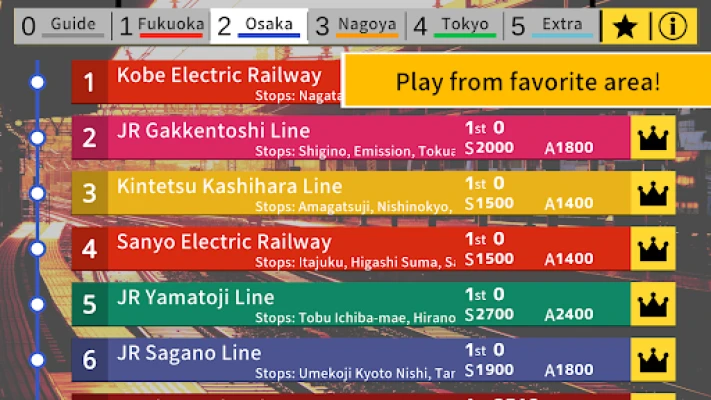 In this game, the theme is the evening rush hour in Japan. Transport your customers from terminal stations to stations in commuter towns. We have also made it possible to enjoy separate routes for Tokyo, Nagoya, Osaka, and Fukuoka, so you can play from the route of your choice.