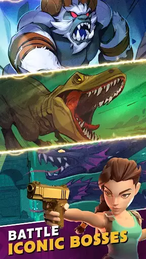 Dropping to a knee after an epic dungeon boss doesn’t signal the end! You’ll be awarded a trove of coins and experience points for each monster defeated to upgrade Lara’s outfits and weapons, increasing your base attack and HP stats.
