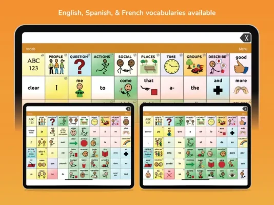 TouchChat provides both English, Spanish, and French options in a universal app supporting iPhone®, iPod touch® and iPad®.
