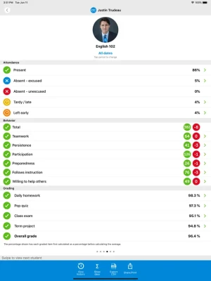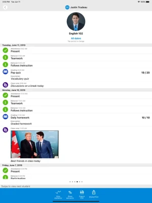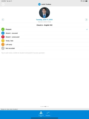 - Record student attendance by scanning student IDs with bluetooth scanner