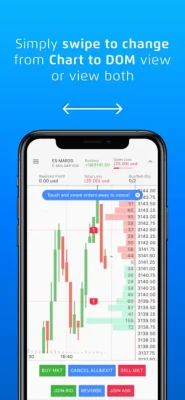• See the Action as it Happens - Swipe to change from Chart to DOM view or view both on the same screen.