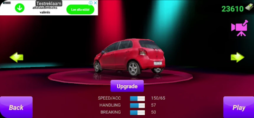 - Basic customization in garage like upgrade or downgrade acceleration, maximum speed, brakes, wheels grip
