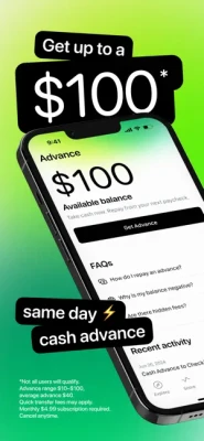 Access to up to $100 cash advance. Approval not guaranteed. Need it rapidly? We can expedite within minutes for a small fee*. All you have to do is download the app today and connect your bank account to get started. Once you’re a member**, request an advance and receive funds in your bank account in 3 days or less.