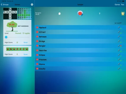 • Create up to eight groups of words (lists). An unlimited number of groups can be purchased as a one-time in-app purchase, at a minimal cost.
