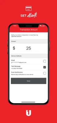• Set up transaction alerts via email, text or push notifications