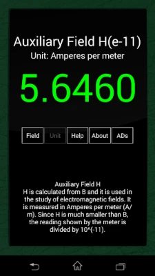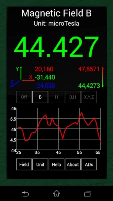 NOTE that this app uses the magnetic sensor. If your phone doesn't have this sensor the app is NOT going to display any measurements. If you open the app and the readings are 0 it means that this app can't work on your phone. Also avoid getting your phone near powerful electrical devices like power transformers since you might damage it. Use at your own risk.