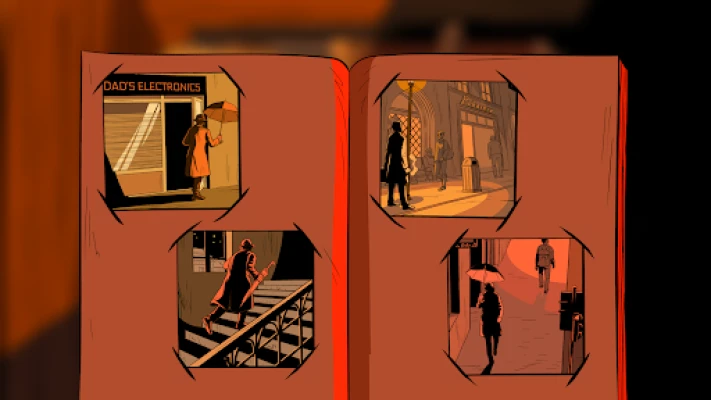 Unboxing the Cryptic Killer features hand-illustrated environments that are inspired by noir novels.