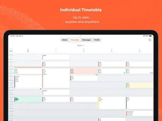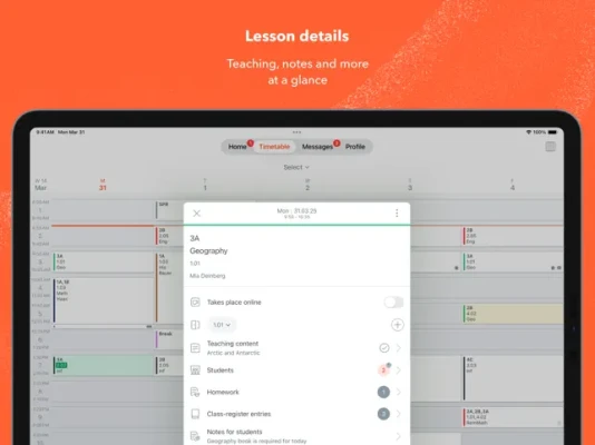- Exam dates, homework and video links to online lessons directly in the timetable