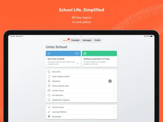 Additional WebUntis modules – e.g. Digital Class Book, Appointments, Parents-teacher days and much more – expand the app's functionality.