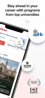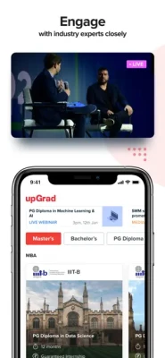 Right from MBA, M.Sc., or other PG degrees, to Bachelor's degrees, the upGrad app has it all! Explore programs in the field of Management, Data Science, Machine Learning, Software Engineering, Digital Marketing, SEO, Blockchain, Analytics, Product Management, Big Data, and more. Interact with professionals, master Kaggle competitions, network with like-minded professionals, all of it, in one app!