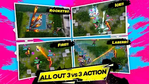 Embrace your inner coolness as a Terminator Robot ?(or Shark Dog ??) and enjoy over-the-top 3v3 combat in humorous yet wildly epic battle action. Duke it out with friends or join forces with others and blast your way through various game modes in under three minutes. Easy and intuitive game controls, but endless team customization possibilities with 20+ heroes and even more skins to unlock as you progress.